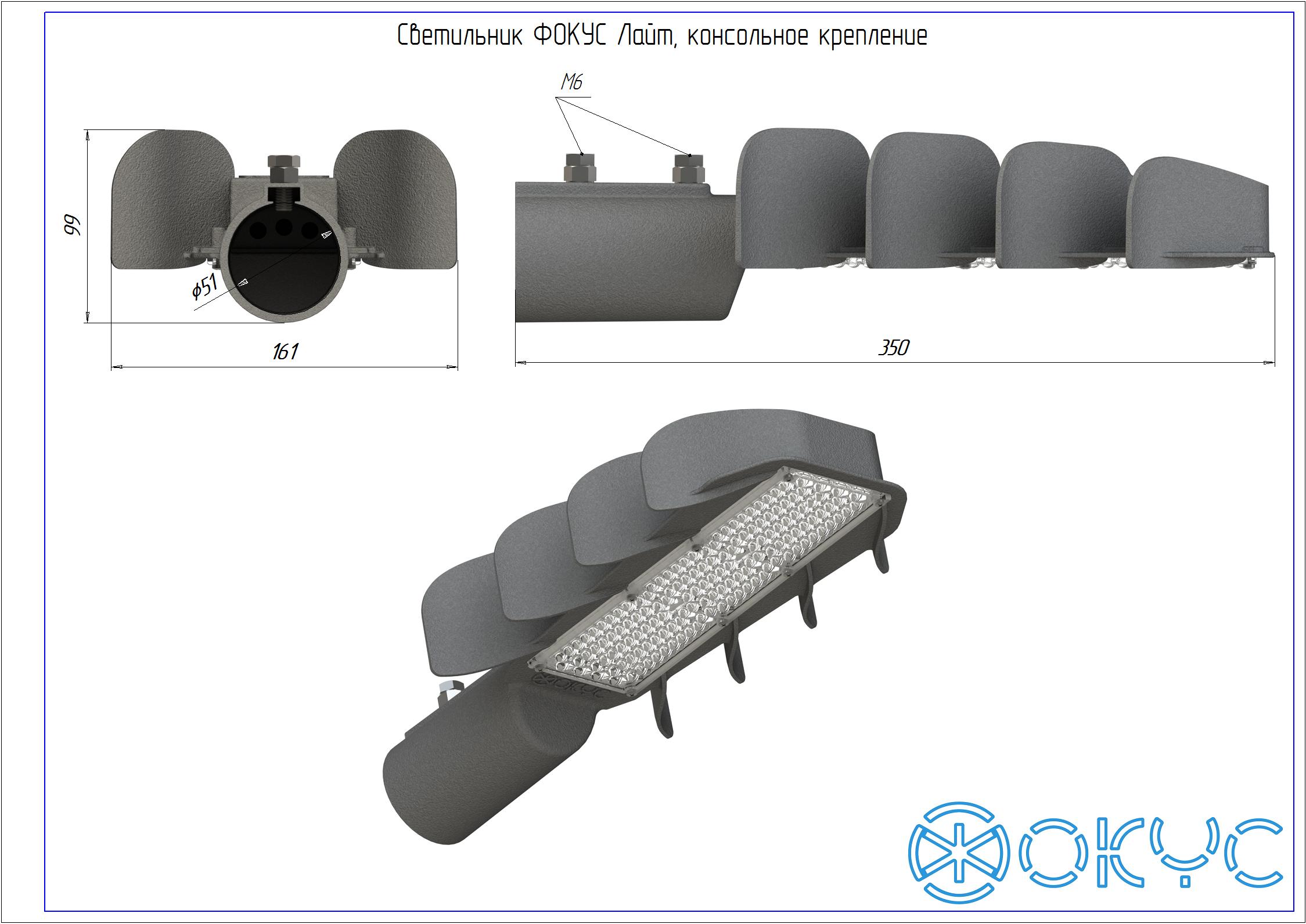 Корпус светильника изготовлен из литого алюминия и представляет собой монолитную конструкцию с уровнем защиты IP66, а консольное крепление легко монтируется на трубу до 50 мм.