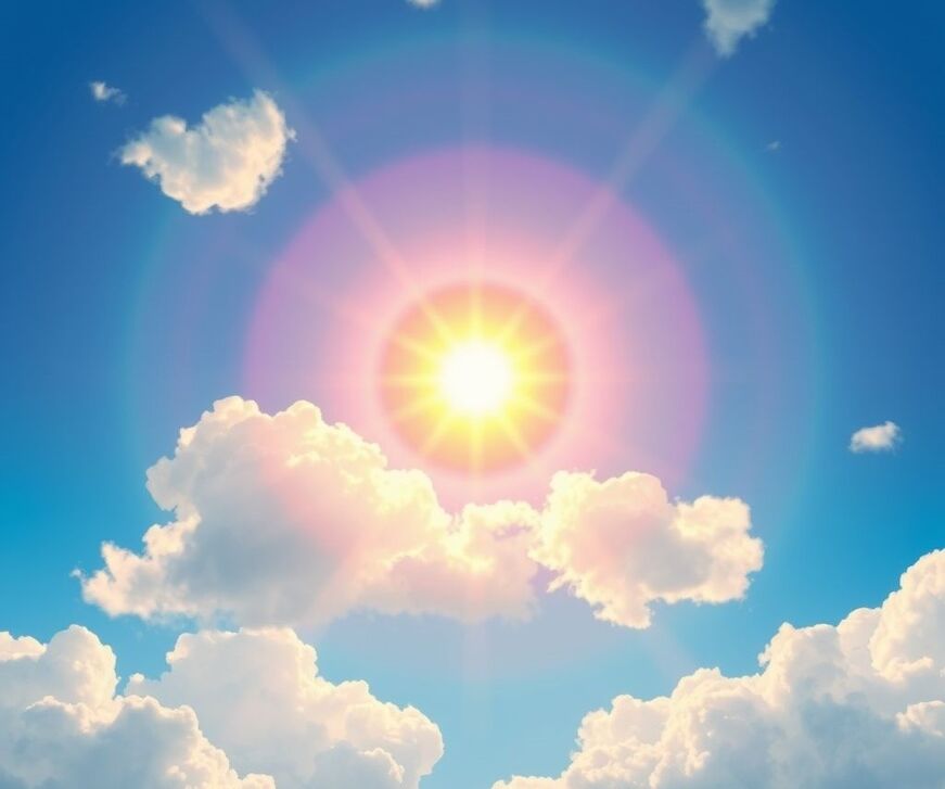 Солнечное гало - это атмосферное явление, которое возникает, когда солнечный свет отражается от ледяных кристаллов в перистых облаках или в атмосфере на больших высотах. Кристаллы льда действуют как маленькие зеркала, отражая свет солнца в различных направлениях, создавая яркие окружности вокруг солнца.