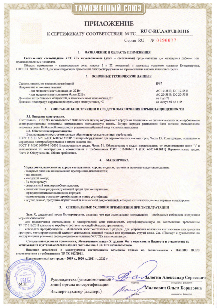 Низковольтный и взрывозащищенный светильник предназначен для работы от аккумуляторов, систем с применением солнечных батарей, ветрогенераторов и т.д. Напряжение, В - DC от 20 до 55, AC от 20 до 38. Уровень взрывозащиты не выше 2Ex nR IIС T6 Gc X и Ex tb IIIC T80°C Db X.