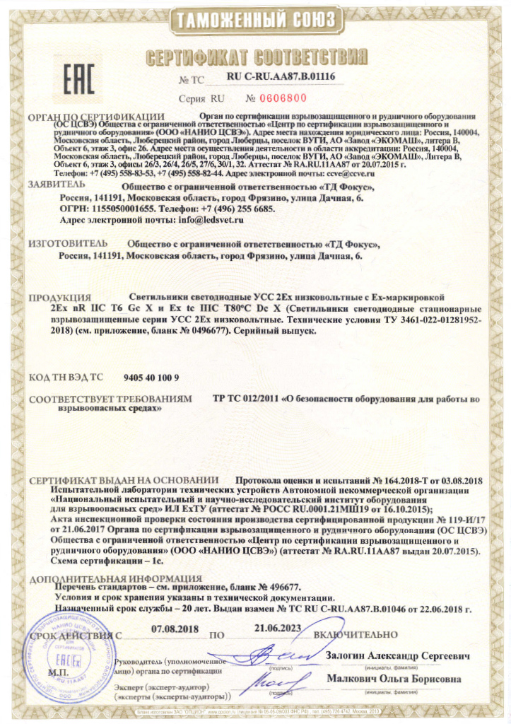 Светильник ФОКУС УСС 32 Д НВ 2Ex цена, модификации, описание