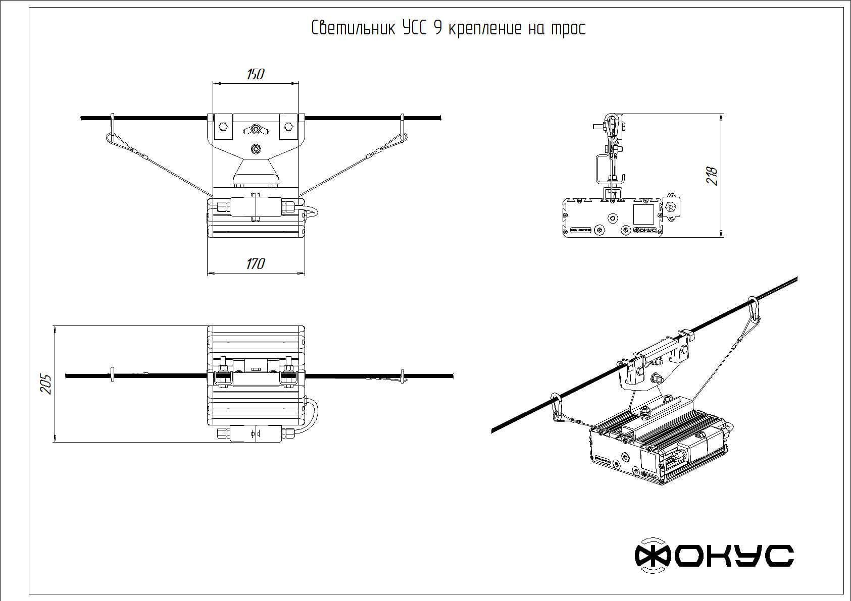 Светильник УСС 9 Д крепление на трос, 3000К