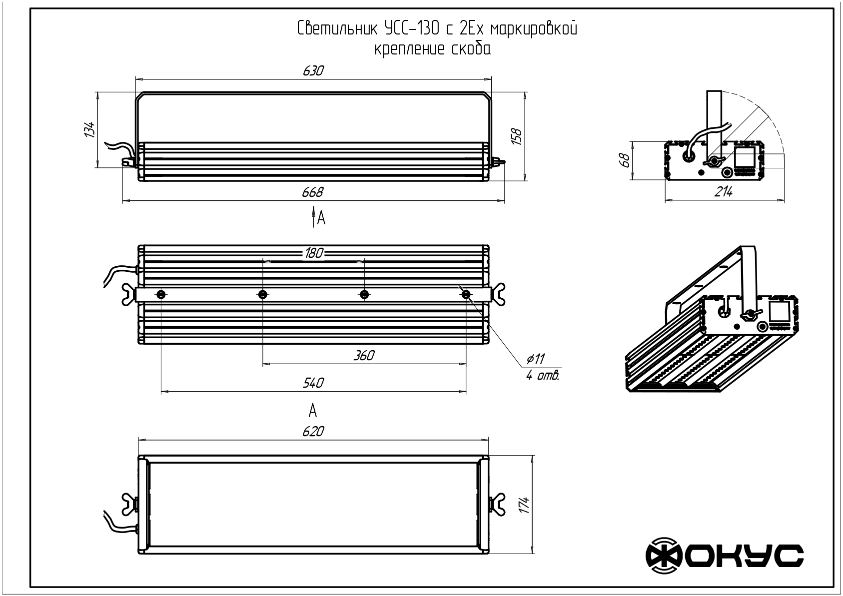 Светильник ФОКУС УСС 130 Д 2Ex скоба - цена, модификации, описание