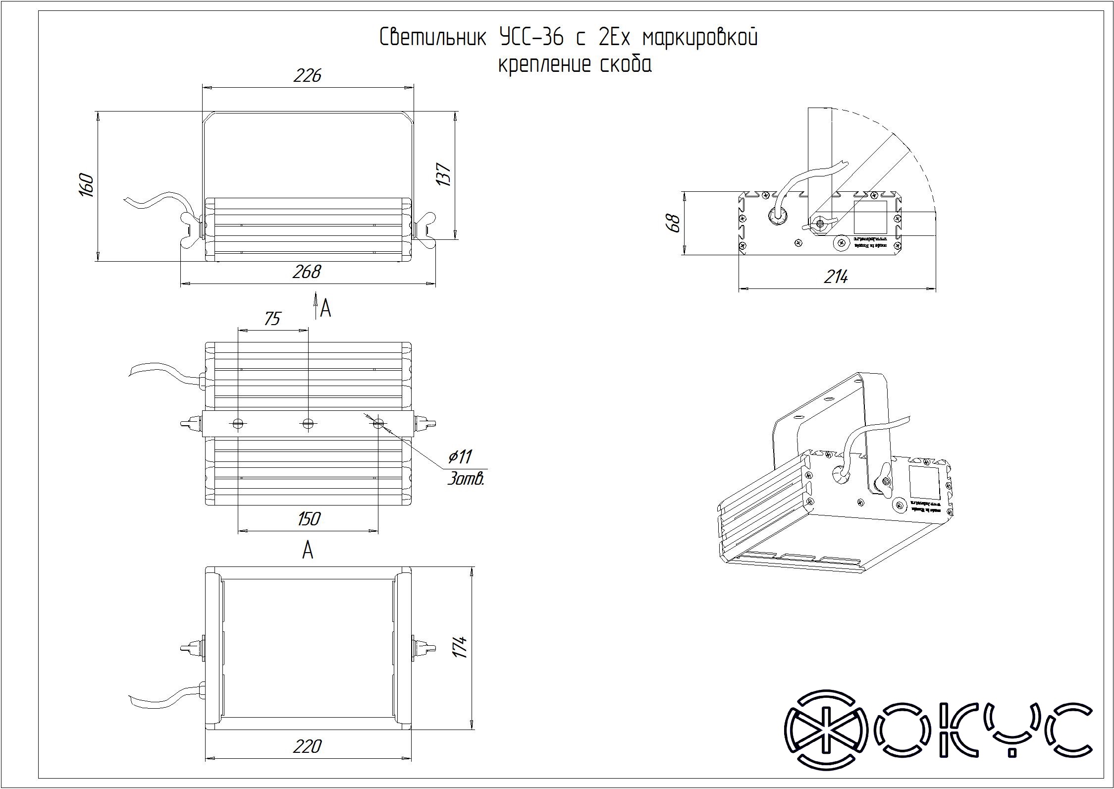 Светильник ФОКУС УСС 36 Д 2Ex скоба - цена, модификации, описание