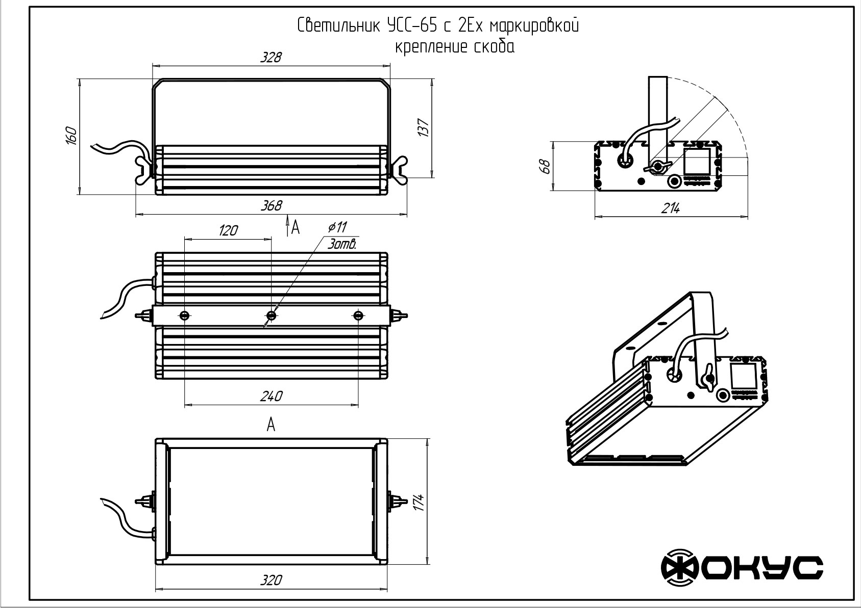 Светильник ФОКУС УСС 65 Д 2Ex скоба - цена, модификации, описание